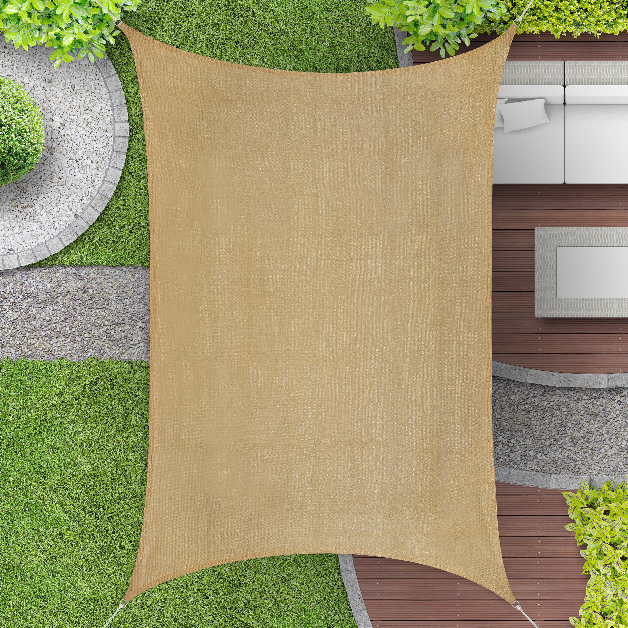 Pasirinkite mūsų stačiakampį tentą nuo saulės ir mėgaukitės stilingu pavėsiu bei privatumu savo lauko erdvėje!