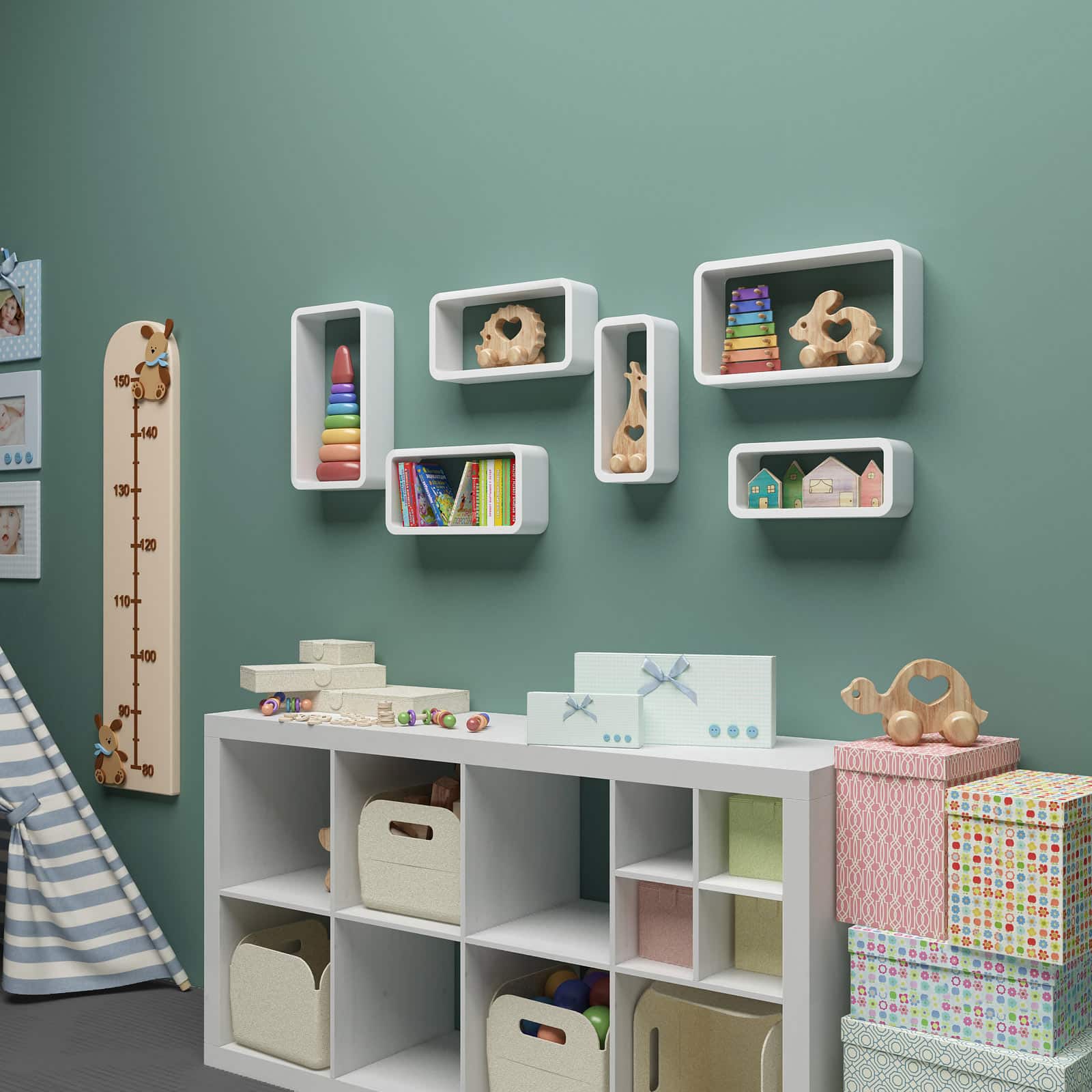 Stačiakampių sieninių lentynų rinkinys, 44 cm. x 39 cm. x 34 cm., 3 vnt., baltos spalvos, yra puikus pasirinkimas jūsų namų interjerui. Šis SONGMICS lentynų komplektas pagamintas iš aukštos kokybės medžio dulkių plokštė (MDF) plokščių, atitinkančių E1 emisijos klasę. Lentynos yra atsparios drėgmei, nėra lengvai deformuojamos ir pasižymi dideliu atsparumu.