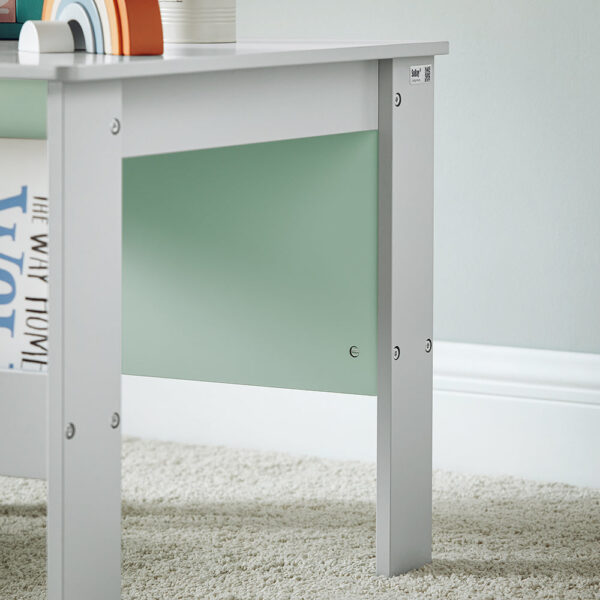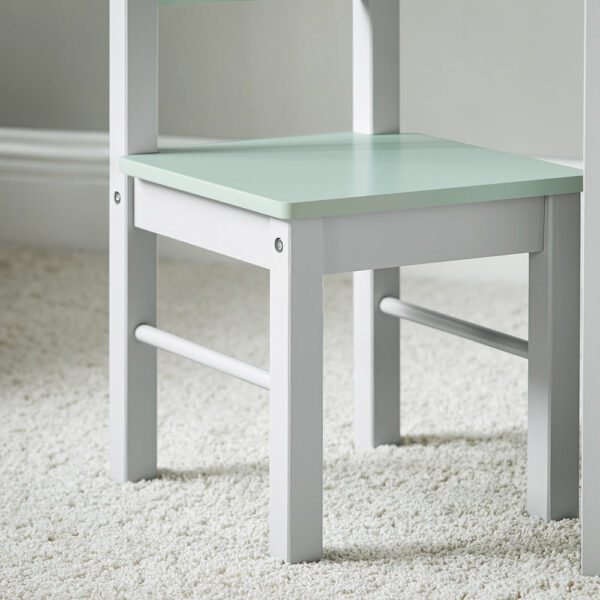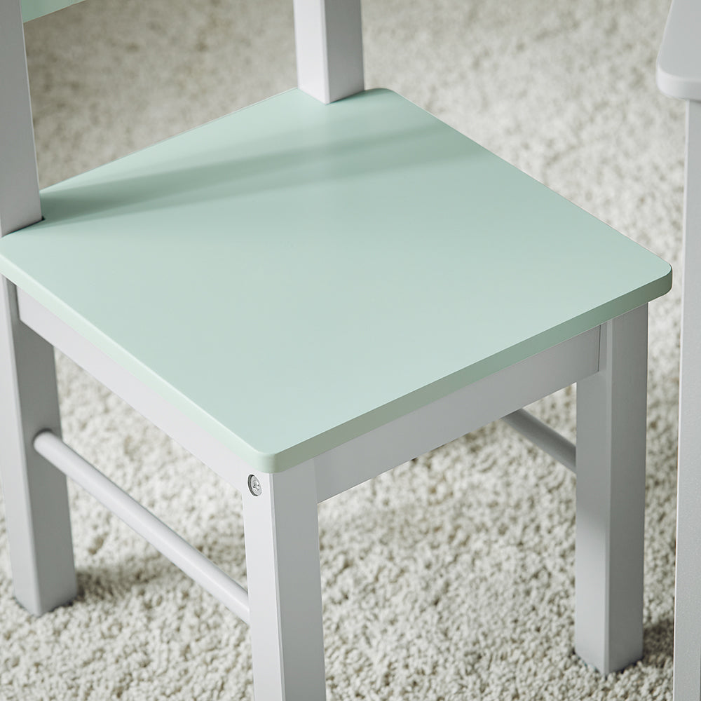 Šis vaikų stalas su 2 kėdėmis, šviesiai žalios ir pilkos spalvos, yra puikus pasirinkimas jūsų vaikų kambariui. Dėl draugiškų vaikams matmenų, šis baldų komplektas suteikia vaikams galimybę savarankiškai valgyti, žaisti, piešti ir užsiimti savo pomėgiais. Dvi kėdės leidžia vaikams smagiai leisti laiką su draugais.