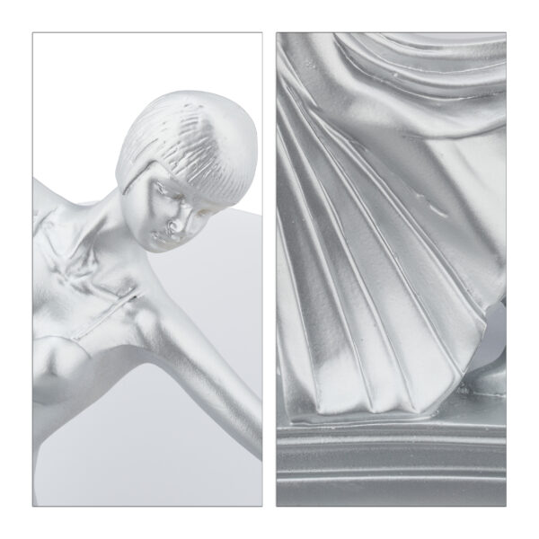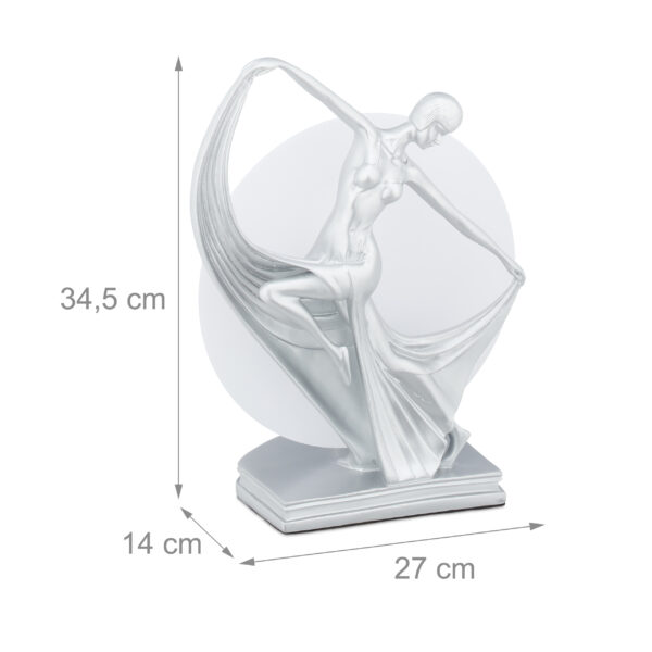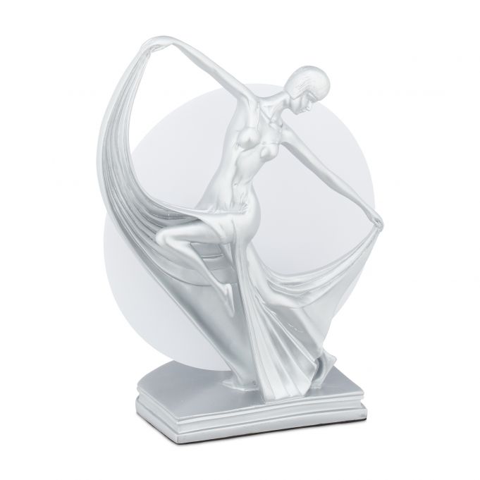- Unikalus dizainas: Šviestuvas pasižymi elegantiška sidabrine apdaila, kurią papildo grakšti moteriška figūra, šokanti retro stiliumi.