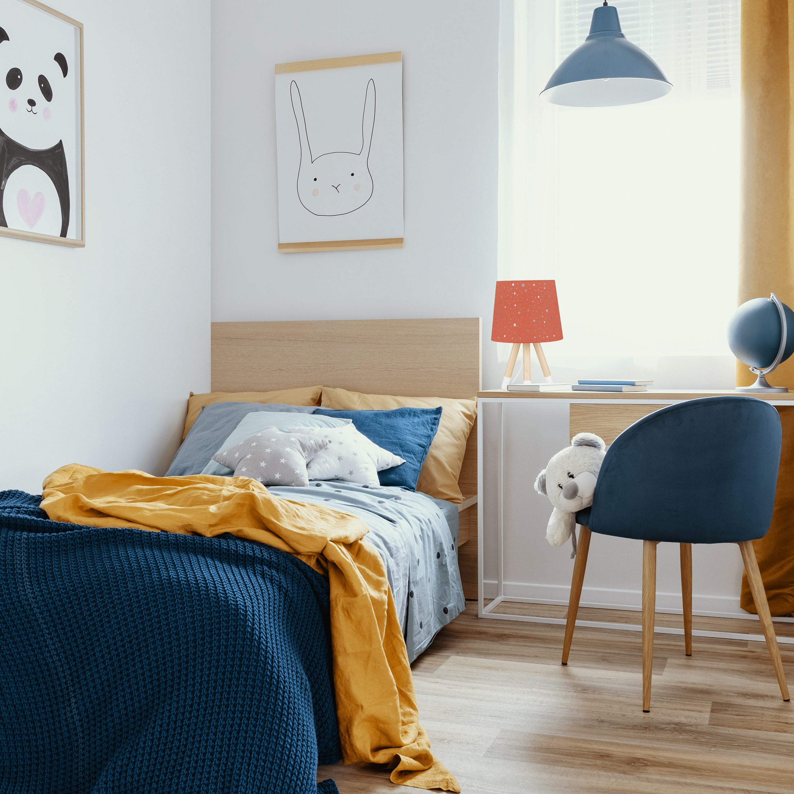 - Spalvų derinys: Mėlyna, šviesiai ruda ir balta spalvos suteikia šviestuvui žaismingumo ir elegancijos.