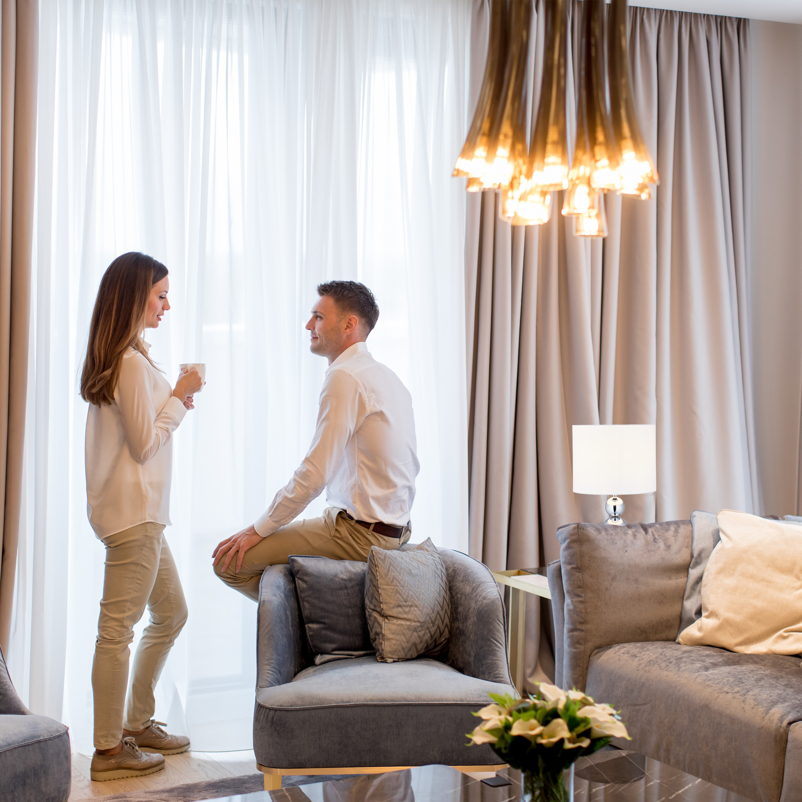 - Atmosferos apšvietimas su netiesiogine šviesa, kuri sukuria jaukią aplinką