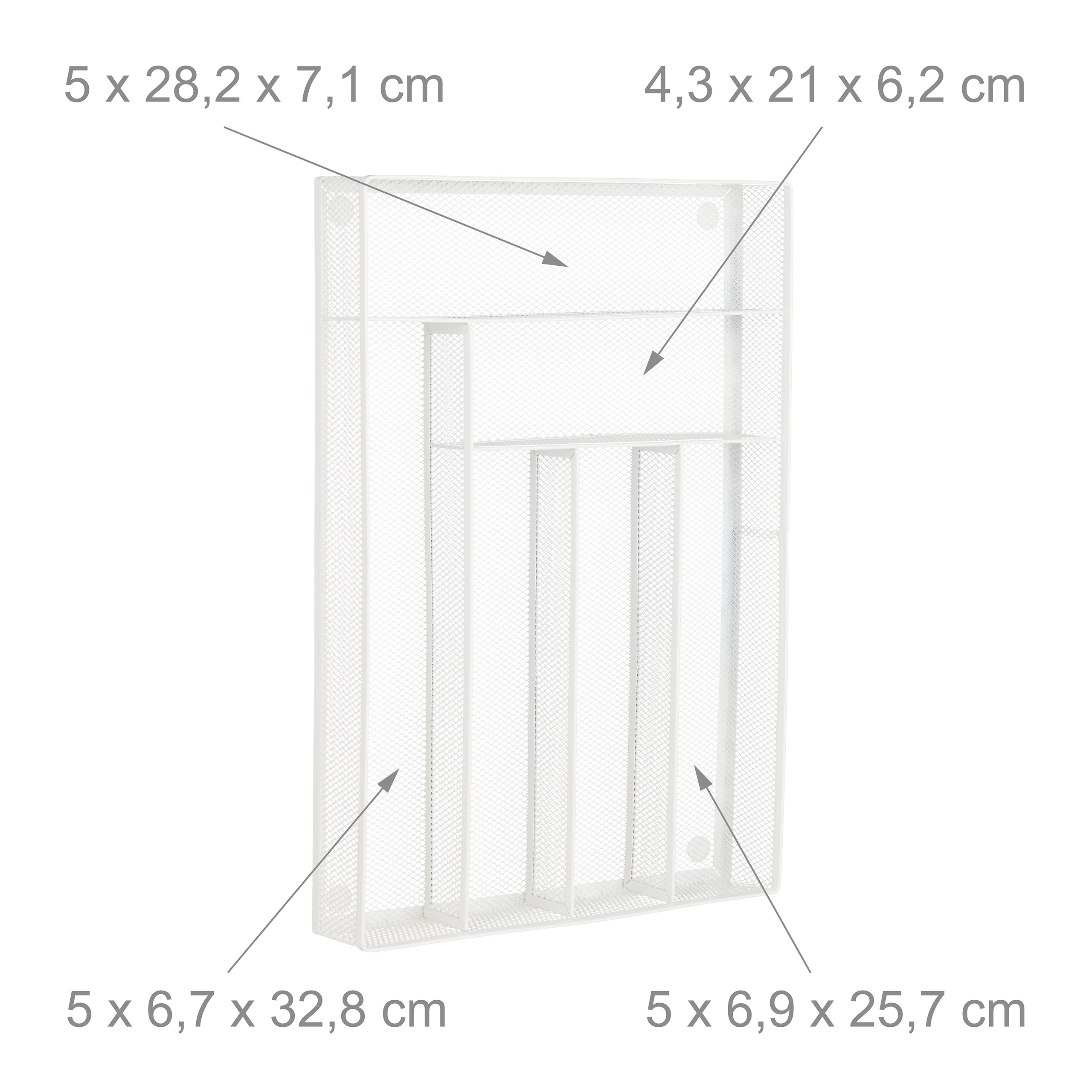 6 skyriai: Leidžia tvarkingai ir aiškiai laikyti įvairaus dydžio virtuvės reikmenis.