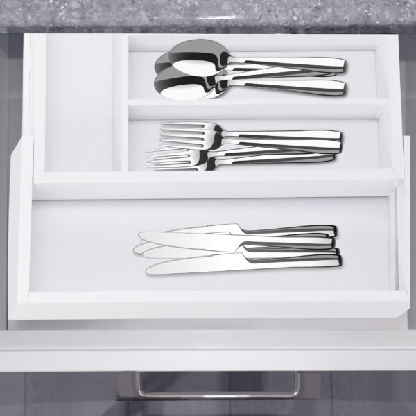 Ieškote būdo, kaip palaikyti tvarką savo virtuvės stalčiuose? Mūsų stalo įrankių padėklas yra puikus sprendimas, padedantis išvengti chaoso ir užtikrinantis, kad visi jūsų įrankiai būtų lengvai pasiekiami. Šis elegantiškas ir funkcionalus padėklas ne tik suteiks jūsų virtuvei tvarkos, bet ir pridės stiliaus.