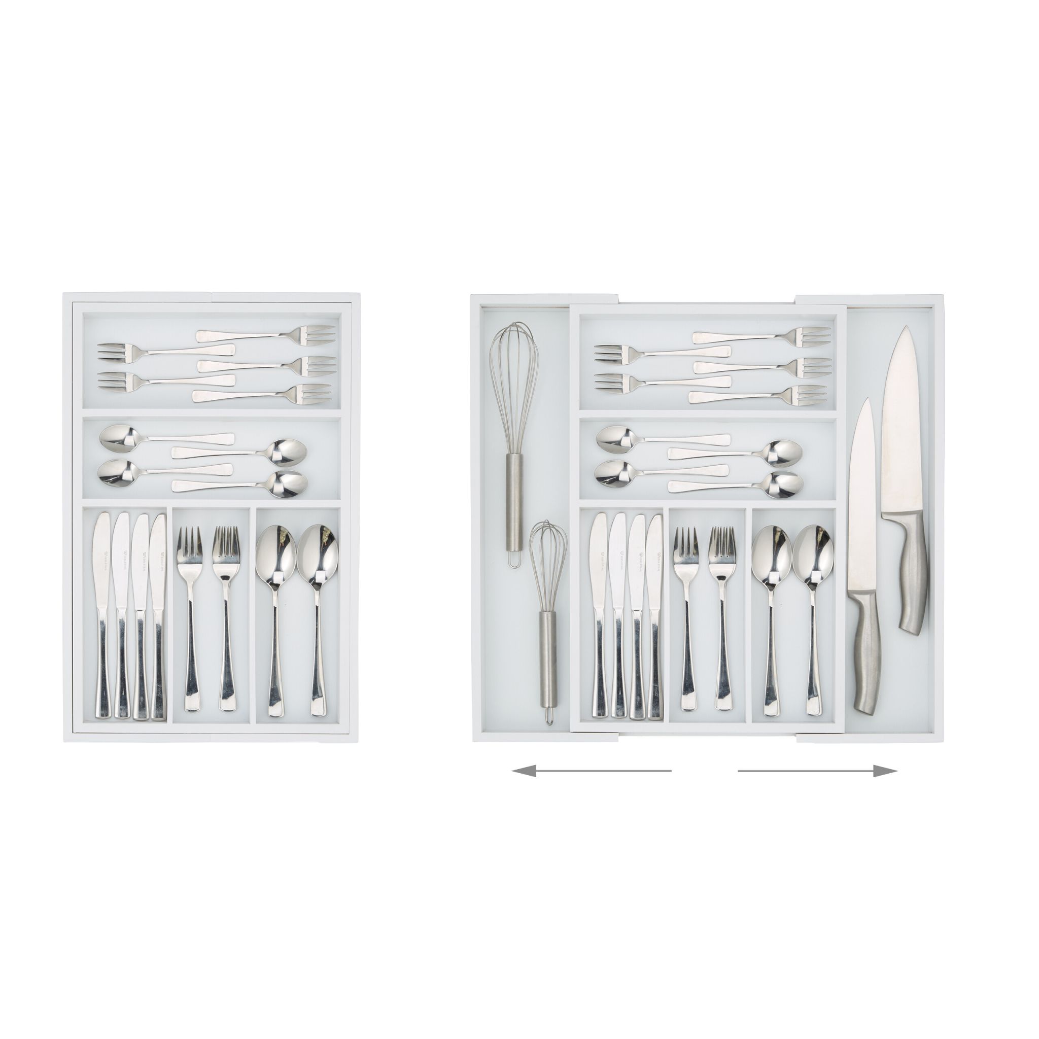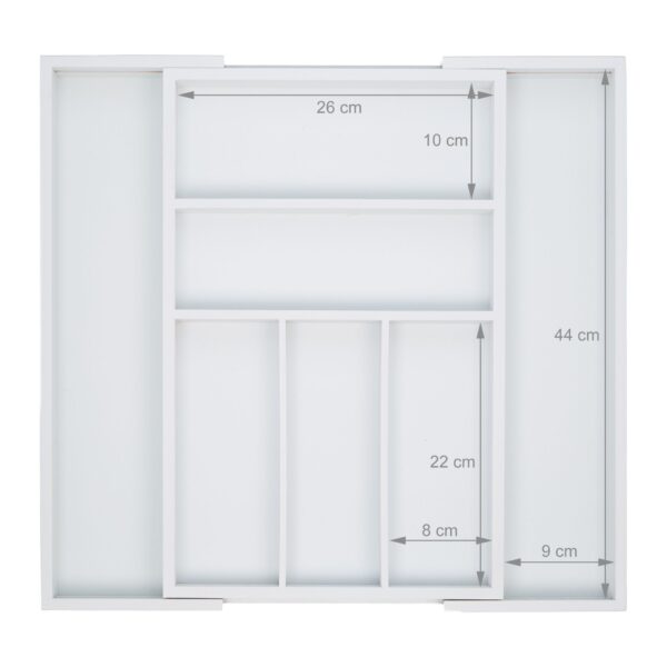 Šis stalo įrankių padėklas turi iki 7 skyrių, kurie leidžia patogiai ir aiškiai surūšiuoti jūsų stalo įrankius: