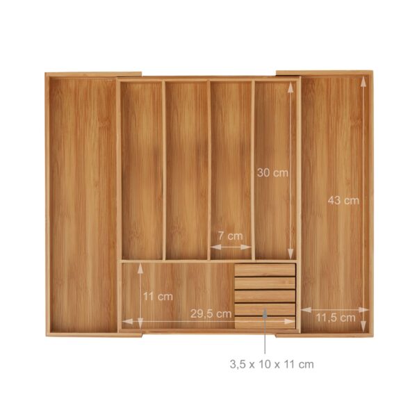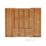 Pristatome elegantišką ir funkcionalų stalo įrankių padėklą, kuris taps nepakeičiamu pagalbininku jūsų virtuvėje. Šis šviesiai rudos spalvos padėklas ne tik suteiks jūsų stalčiui tvarkos, bet ir pridės natūralios estetikos jūsų virtuvės interjerui.