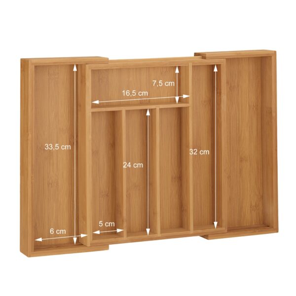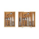 - Reguliuojamas Dydis: Jei reikia, galima ištraukti 2 papildomus skyrius, todėl padėklas puikiai tiks tiek mažuose, tiek dideliuose stalčiuose.