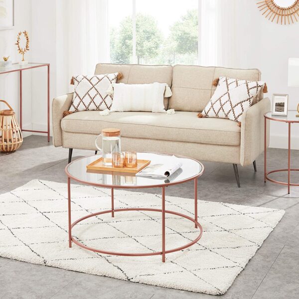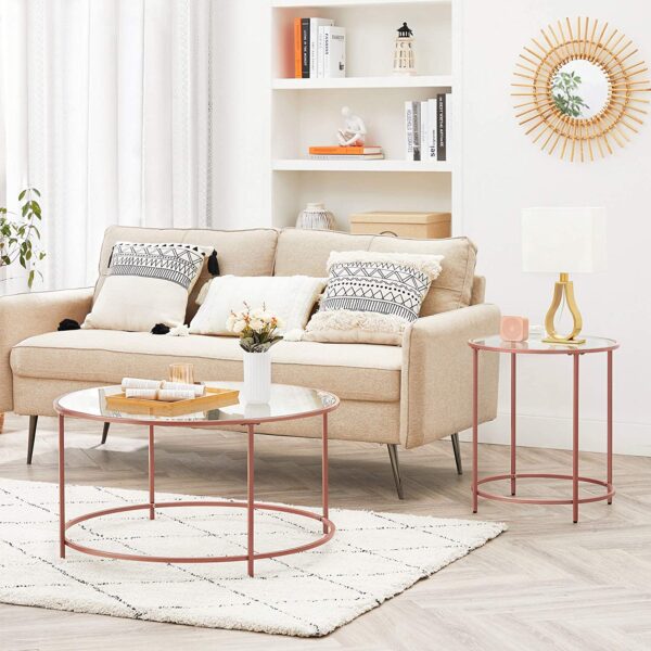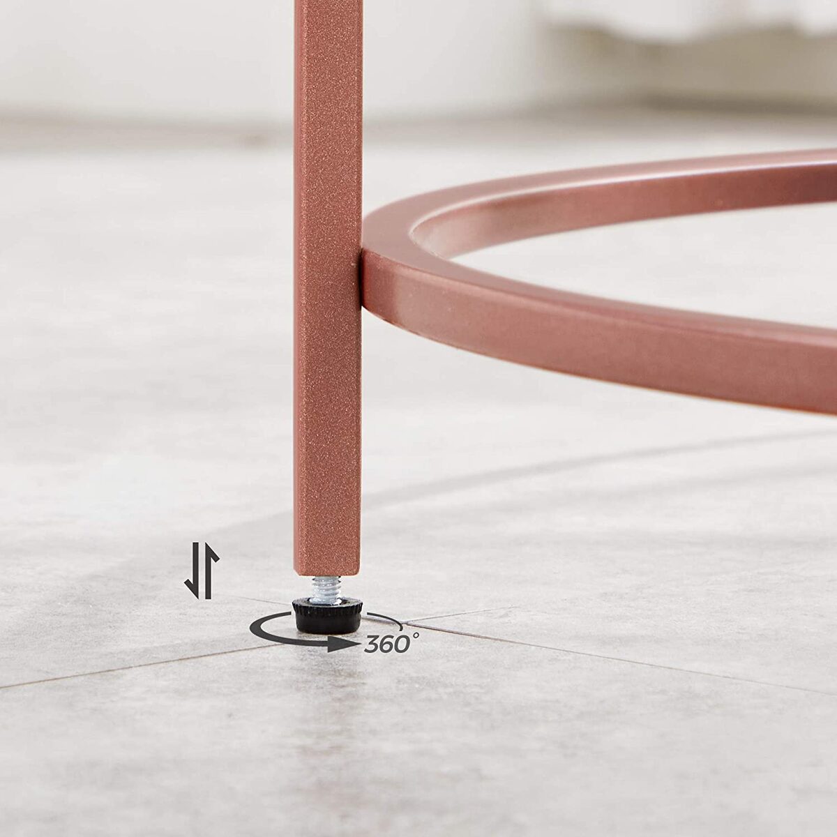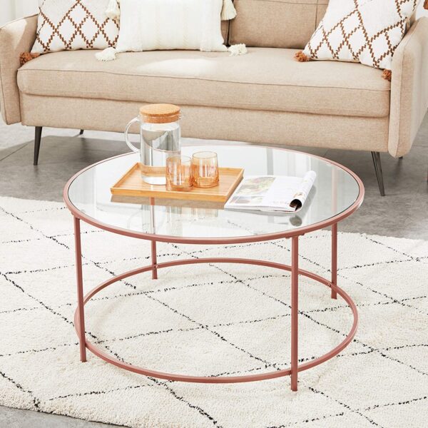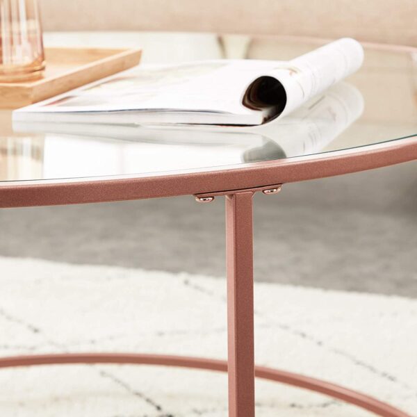 Šis stiklinis stalas su metaliniu rėmu yra puikus pasirinkimas tiek moderniam, tiek klasikiniam interjerui. Jo elegantiška rožinio aukso spalva ir tvirtas plieno bei grūdinto stiklo derinys suteikia prabangos ir ilgaamžiškumo.