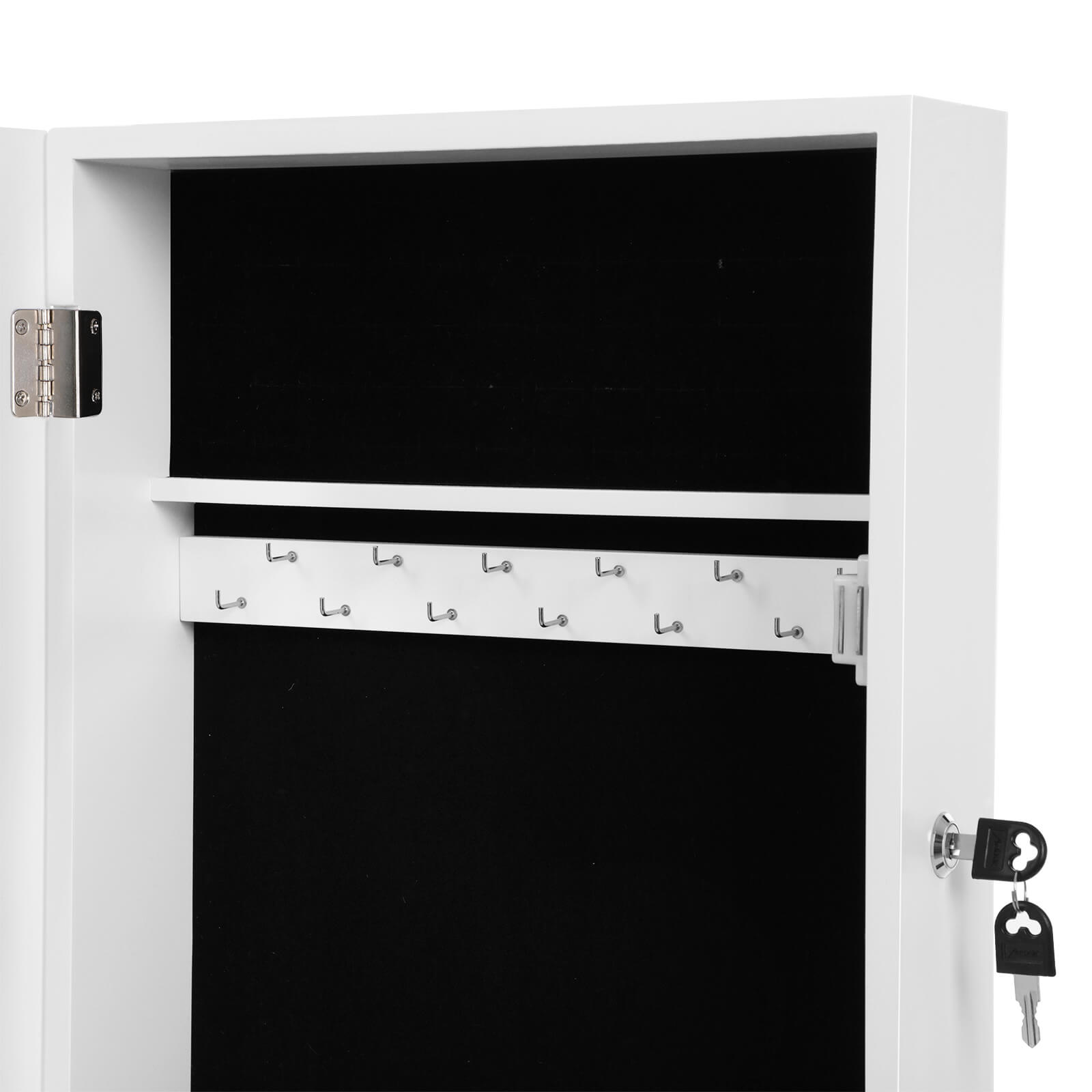 Stilinga pakabinama papuošalų spintelė – veidrodis JBC51W suteiks jums daug metų malonios naudojimo patirties. Pastabos: Veidrodis yra trapus, todėl su juo elkitės atsargiai ir apsaugokite, kad spintelė neapvirstų, kad nesulaužytumėte veidrodžio.
