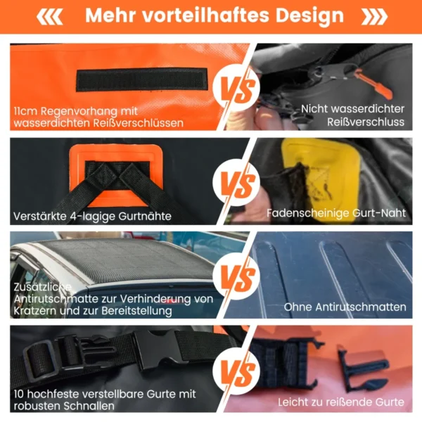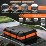 Stogo bagažinė 112x86x43 cm juodos ir oranžinės spalvos yra praktiškas sprendimas didesniam bagažui kelionėse. Pagaminta iš tvirtos ir atsparios PVC medžiagos, ji užtikrina saugumą ir atsparumą įvairioms oro sąlygoms. Dėl didelės 450 litrų talpos lengvai sutalpinsite būtiniausius daiktus šeimos atostogoms ar išvykai.