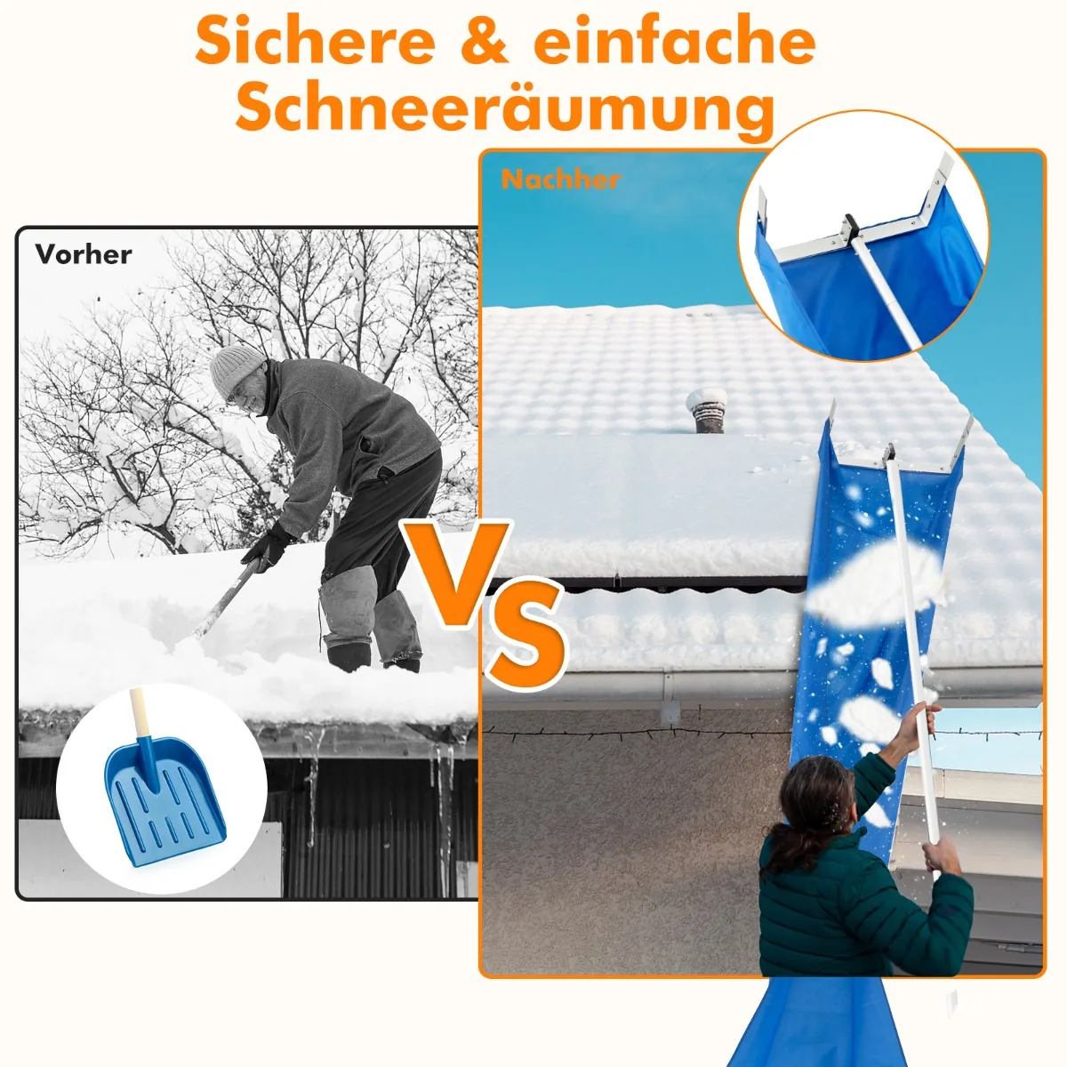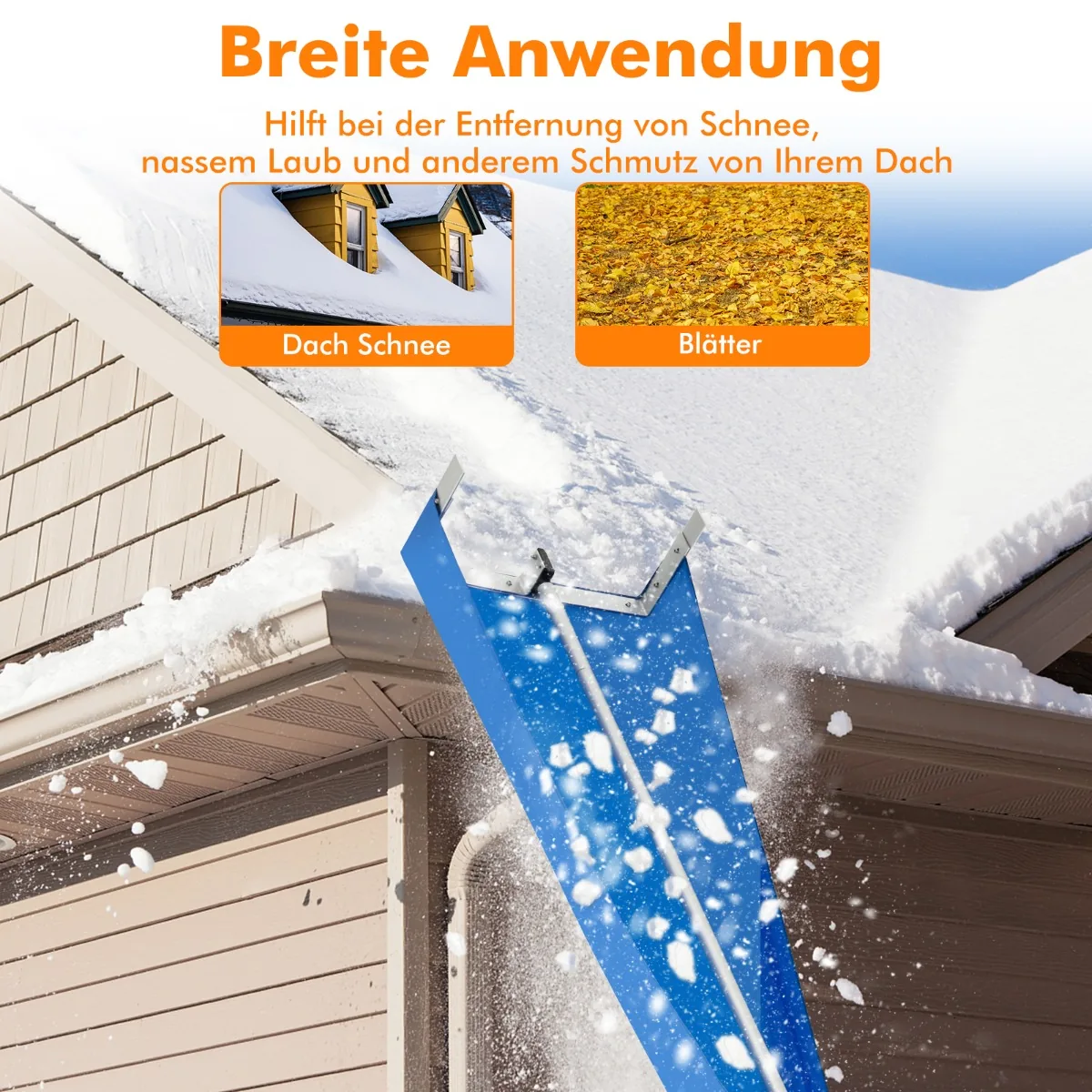 - Lengvas ir saugus naudoti – leidžia nuvalyti sniegą neperkeldami svorio ant stogo.