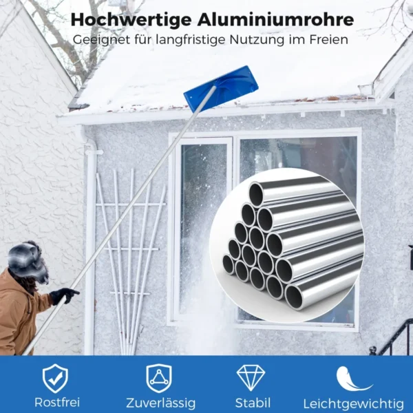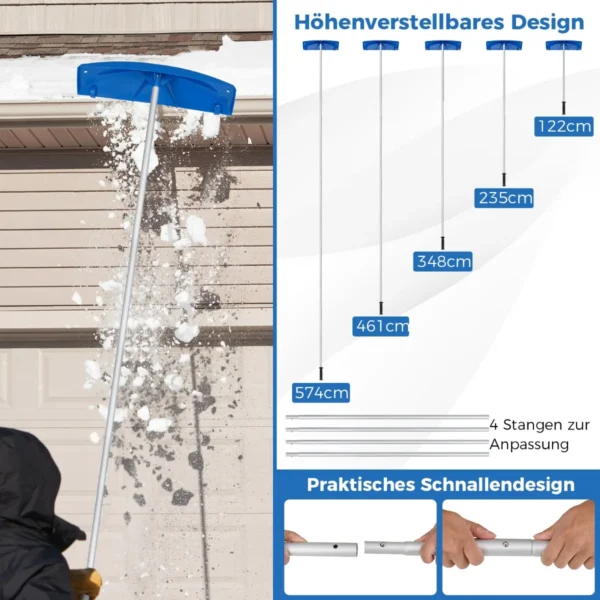 Stogo sniego valytuvas 574x61x16 cm, sidabrinės ir mėlynos spalvos, skirtas patogiam sniego valymui nuo įvairių stogų. Reguliuojamas aukštis ir patogios funkcijos užtikrina efektyvų bei saugų darbą net atšiauriomis žiemos sąlygomis.