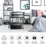 - Sulankstoma konstrukcija leidžia lengvai laikyti stovą spintoje arba atremti prie sienos, taupant vietą.