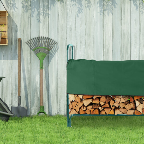 - Apsauginis užvalkalas: didelis, tamsiai žalias užvalkalas apsaugo malkas nuo atmosferos poveikio, net jei stovas yra sode.