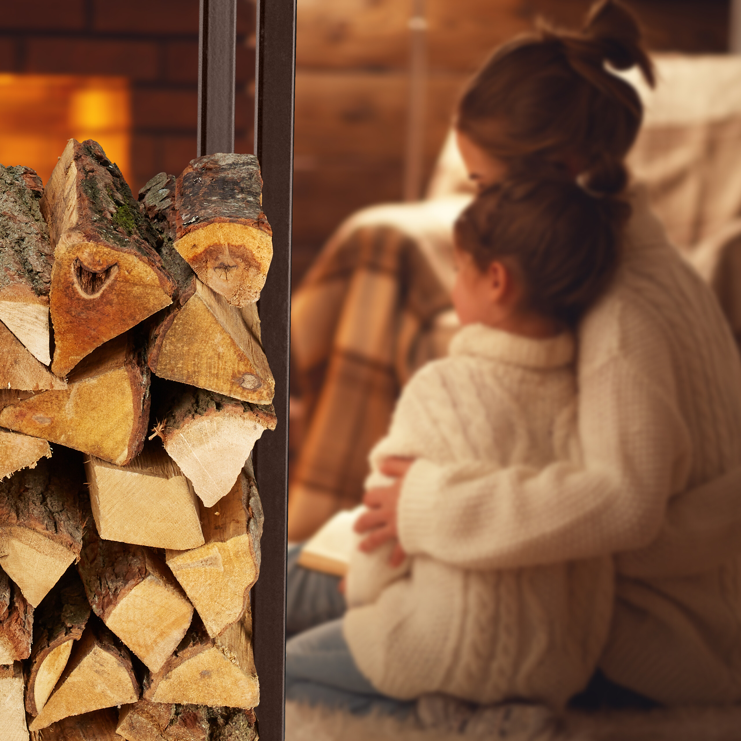 Matmenys: 90,5 x 120 x 20,5 cm – optimalus dydis, leidžiantis laikyti pakankamą kiekį malkų, neužimant per daug vietos.