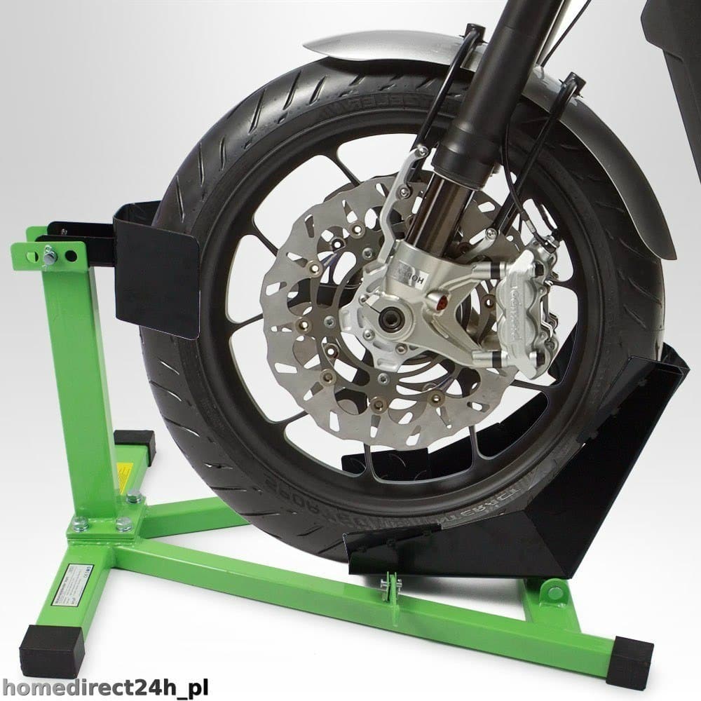 MOTOCIKLO STOVAS Greitas ir paprastas motociklo parkavimas! Pakuotės matmenys 66X50X16 SVORIS 9 KG ; Šis praktiškas stovas idealiai tinka dviračių transporto priemonių laikymui, transportavimui, priežiūrai, aptarnavimui ir remontui. Masyvi stovo konstrukcija garantuoja stabilumą. Laikant jis užima mažiau vietos. Mūsų stovo dėka ratai neapkraunami, todėl galite pamiršti apie padangų deformacijos riziką. Guminė rato rankena garantuoja sukibimo stabilumą.; Tinka 17–21 colio dydžiams ir 90–130 mm pločio ratams. Idealiai tinka dirbtuvėms, mėgėjams, prekiautojams ir lenktynių komandoms bei motociklų grupėms. ;Į RINKINĮ įtraukta: ; – 1x stovas dviračiams, ;– 17–21 colio ratai, ;– 90–130 mm rato plotis Techniniai duomenys: Matmenys: 71 x 47 x 42 cm (P/A/S;, medžiaga: plienas, spalva : žalia / juoda – dažyta, ; Dėžutės matmenys: 66x50x17cm ;