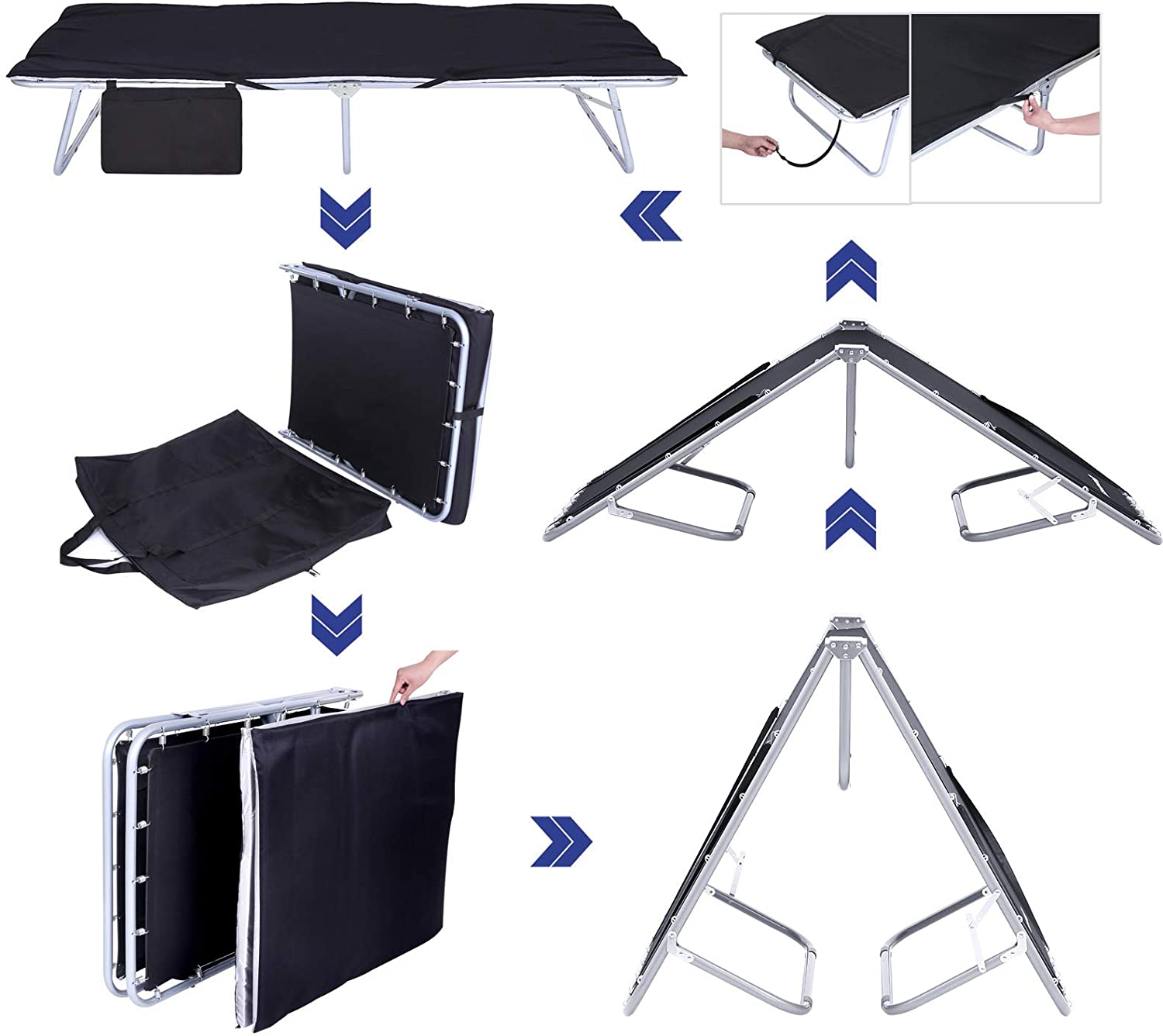Patikima stovyklavimo lova su plieniniu rėmu, paprasta naudoti ir nesudėtinga. Su Songmics stovyklavietės lova pajusite laisvę po žvaigždėtu dangumi. Super kaina išskiria šį pasiūlymą iš kitų lagaminų lovų. Stovyklavietė puikiai tinka stovyklavimui, žygiams ir žvejybai. Itin didelis gulimo paviršius suteikia daug vietos. Dėl papildomo ilgio joje galite gerai ir patogiai gulėti. Miego komfortas daug malonesnis nei ant izoliacinio kilimėlio, o aukštis papildomai apsaugo nuo šalčio ant žemės. Jis turi lengvai valomą paviršių ir yra atsparus vandeniui ir nešvarumams. Kartu su išskirtine danga ir nesenstančiu dizainu ji sukuria skoningą atmosferą ir taip pat yra patraukli akį traukianti priemonė.