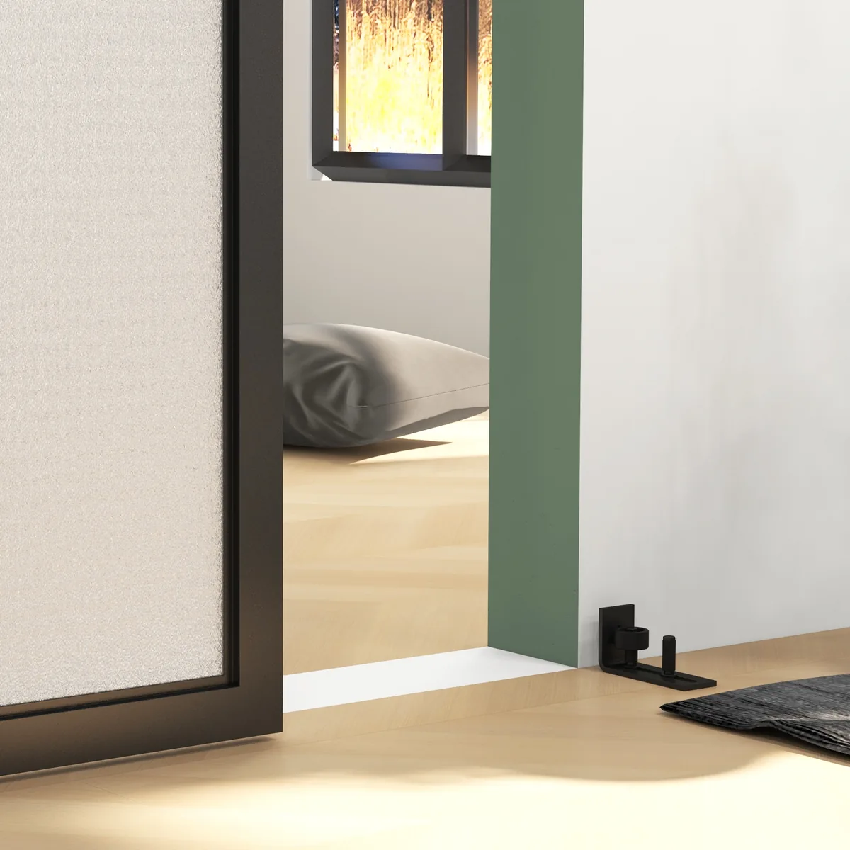 - ✔ Pagaminta iš tvirto, milteliniu būdu dengto anglinio plieno, palaiko iki 90 kg sveriančias stumdomas duris, o slankiosios durys užtikrina tylią sistemą.