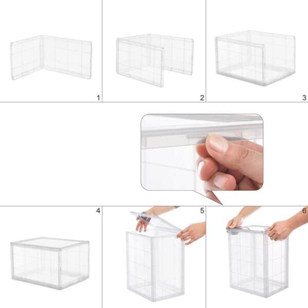 Patvarus ir sukraunamas: Mūsų batų laikikliai pagaminti iš tvirto plastiko, kuris užtikrina ilgą tarnavimo laiką. Dėžutėje jūsų batai bus apsaugoti nuo dulkių ir kandžių. Be to, dėžes galima sukrauti viena ant kitos, taip sukuriant pilną batų spintelę ir sutaupant daugiau vietos.