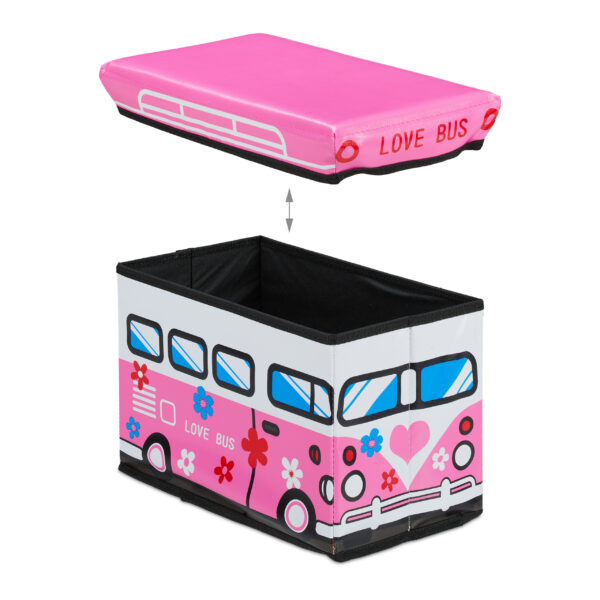 - Patogumas: Paminkštintas dangtis užtikrina patogią sėdėjimo patirtį, todėl dėžė gali būti naudojama kaip taburetė vaikams.