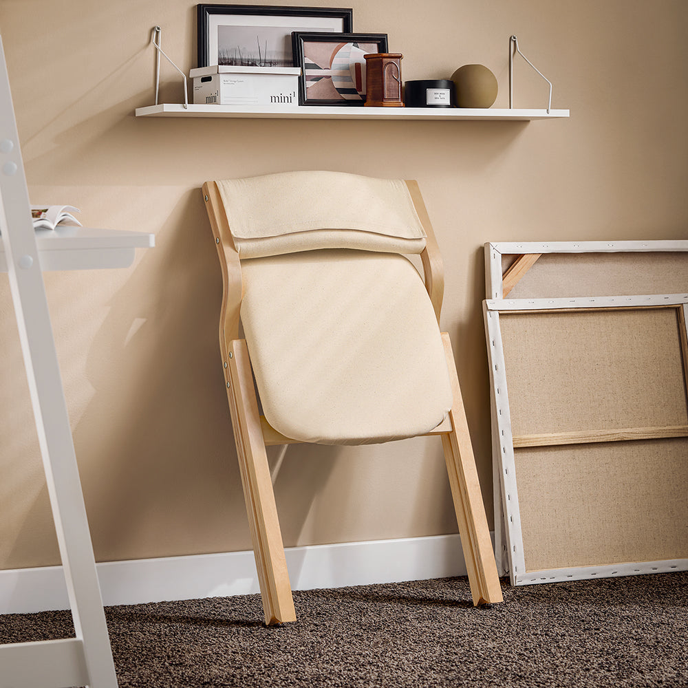 Sulankstoma kėdė 48x59x79 cm, šviesiai rudos/kreminės spalvos, yra puikus pasirinkimas tiems, kurie vertina komfortą ir funkcionalumą. Ši kėdė suteikia puikų juosmens palaikymą dėl specialiai suprojektuoto atlošo kampo, todėl galite patogiai sėdėti ilgą laiką.