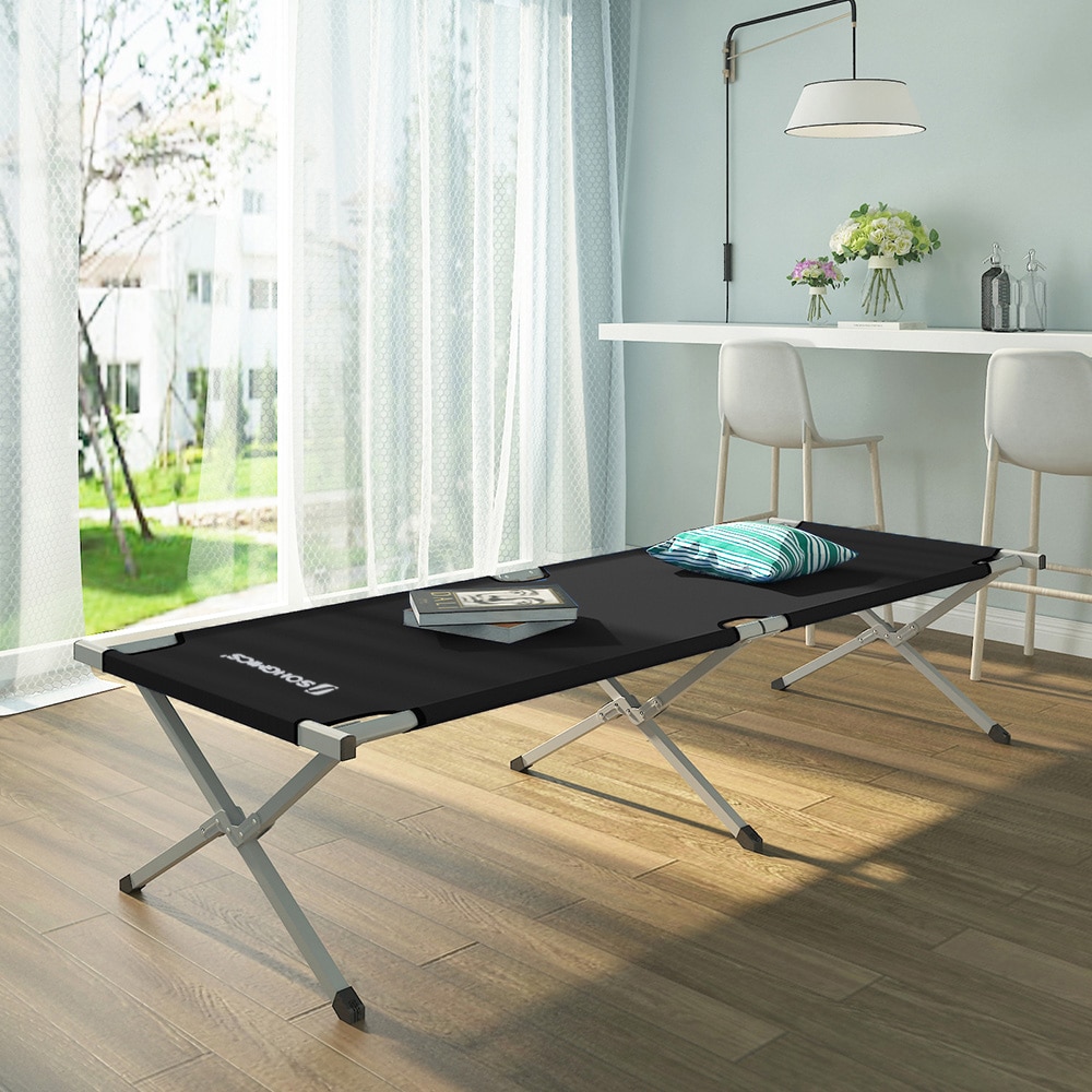 Patikima sulankstoma kempingo lova su vamzdiniu plieniniu rėmu, lengvai valdoma ir nesudėtinga. Su mūsų lovomis pajusite laisvę po žvaigždėtu dangumi. Patirsite atsipalaidavimą ir nuotykius vienu metu. Ši stovyklavimo lova puikiai tinka stovyklavimui, žygiams ir žvejybai. Didelis gulimo paviršius suteikia daug vietos, o miego komfortas yra daug malonesnis nei ant pripučiamo čiužinio. Aukštis papildomai apsaugo nuo šalčio ant grindų. Lova turi lengvai valomą paviršių ir yra atspari vandeniui bei nešvarumams. Kartu su išskirtine danga ir nesenstančiu dizainu ji sukuria skoningą atmosferą ir patraukliai traukia akį.