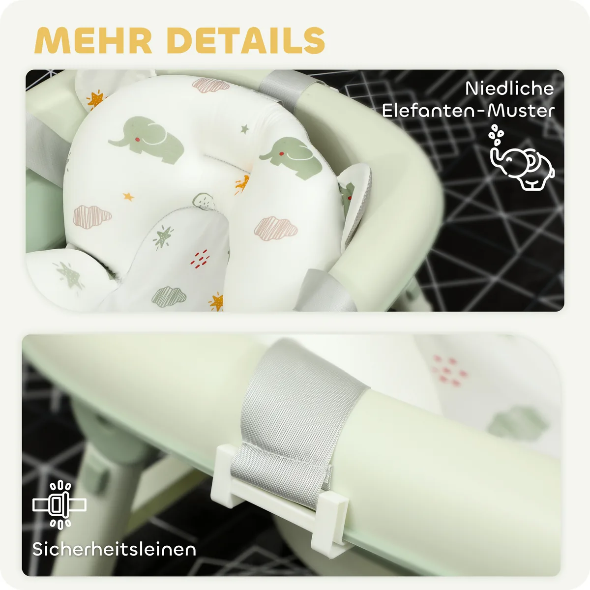 Paverskite maudymosi laiką džiaugsmu su sulankstoma kūdikių vonele AIYAPLAY. Su jaukia vonios pagalvėle su linksmais dramblio raštais, vonia garantuoja saugumą ir komfortą jūsų kūdikiui dėl stabilaus, nuo galo atsparaus pagrindo ir mygtukais valdomo atraminio stovo. Vonios mielos animacinių filmų lentynos užtikrina, kad visi būtiniausi maudymosi reikmenys visada būtų lengvai pasiekiami! Tinka kūdikiams ir mažiems vaikams iki 3 metų.