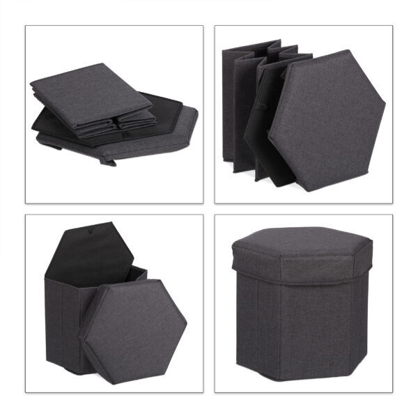 Ši tamsiai pilkos spalvos sulankstoma sėdimoji vieta yra ne tik funkcionali, bet ir stilinga detalė, kuri papildys jūsų namų interjerą. Pasirinkite šią taburetę, kad jūsų erdvė būtų tvarkinga ir patogi.