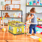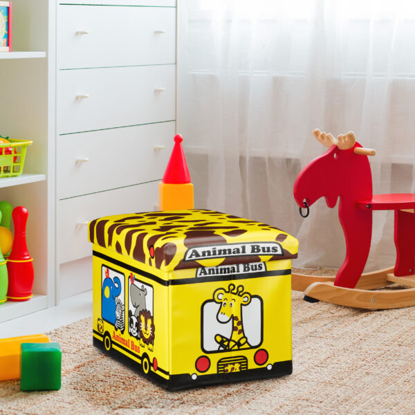Sulankstoma sėdimoji vieta su atlenkiamu dangčiu 32x48x32cm., geltonos/juodos/baltos spalvos