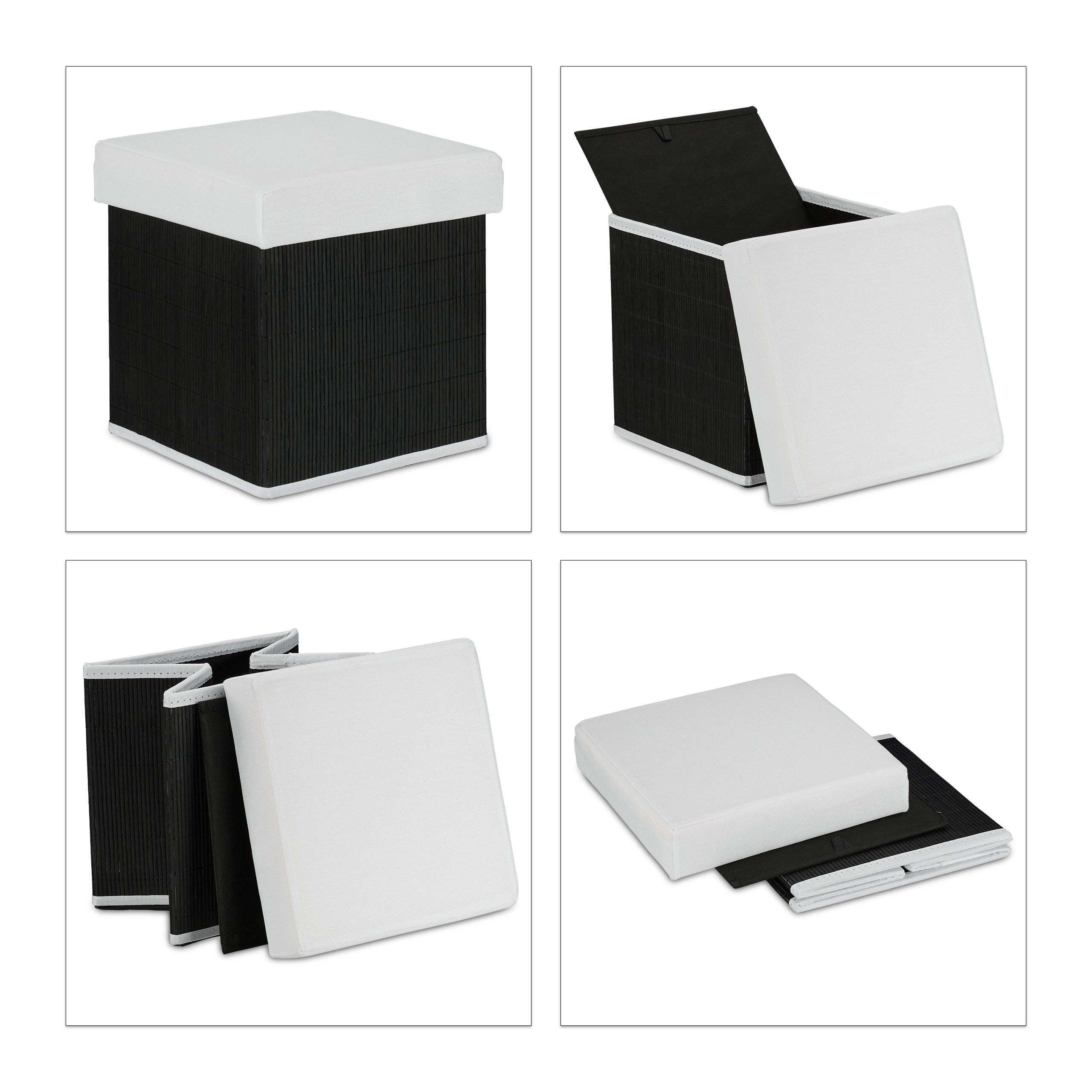 Sulankstoma Sėdimoji Vieta su Atlenkiamu Dangčiu 35x35x35cm, Juodos/Baltos Spalvos