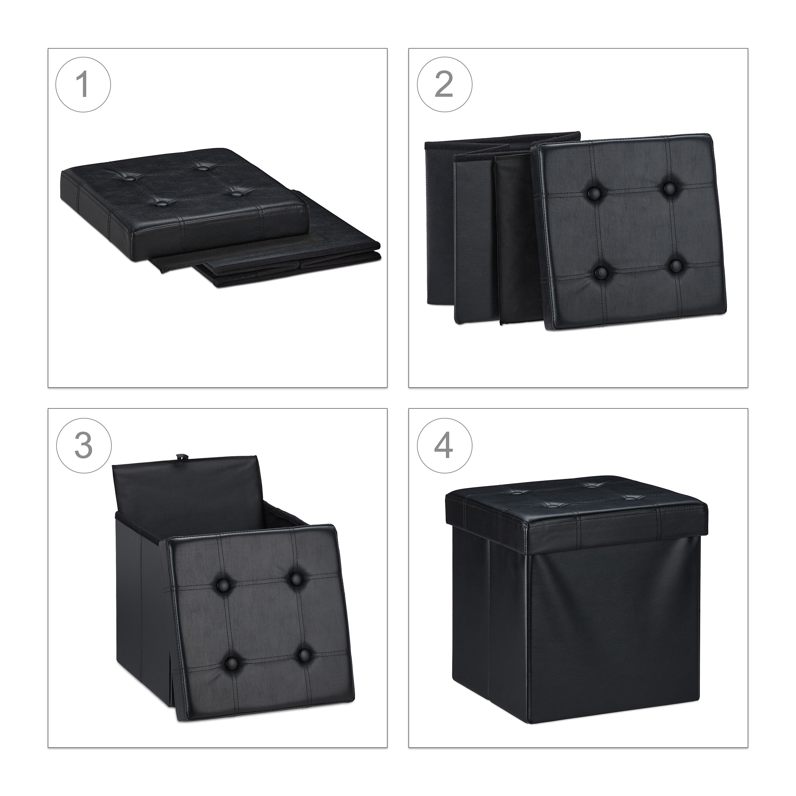 Sulankstoma sėdimoji vieta su atlenkiamu dangčiu 38x37x37 cm, juodos spalvos