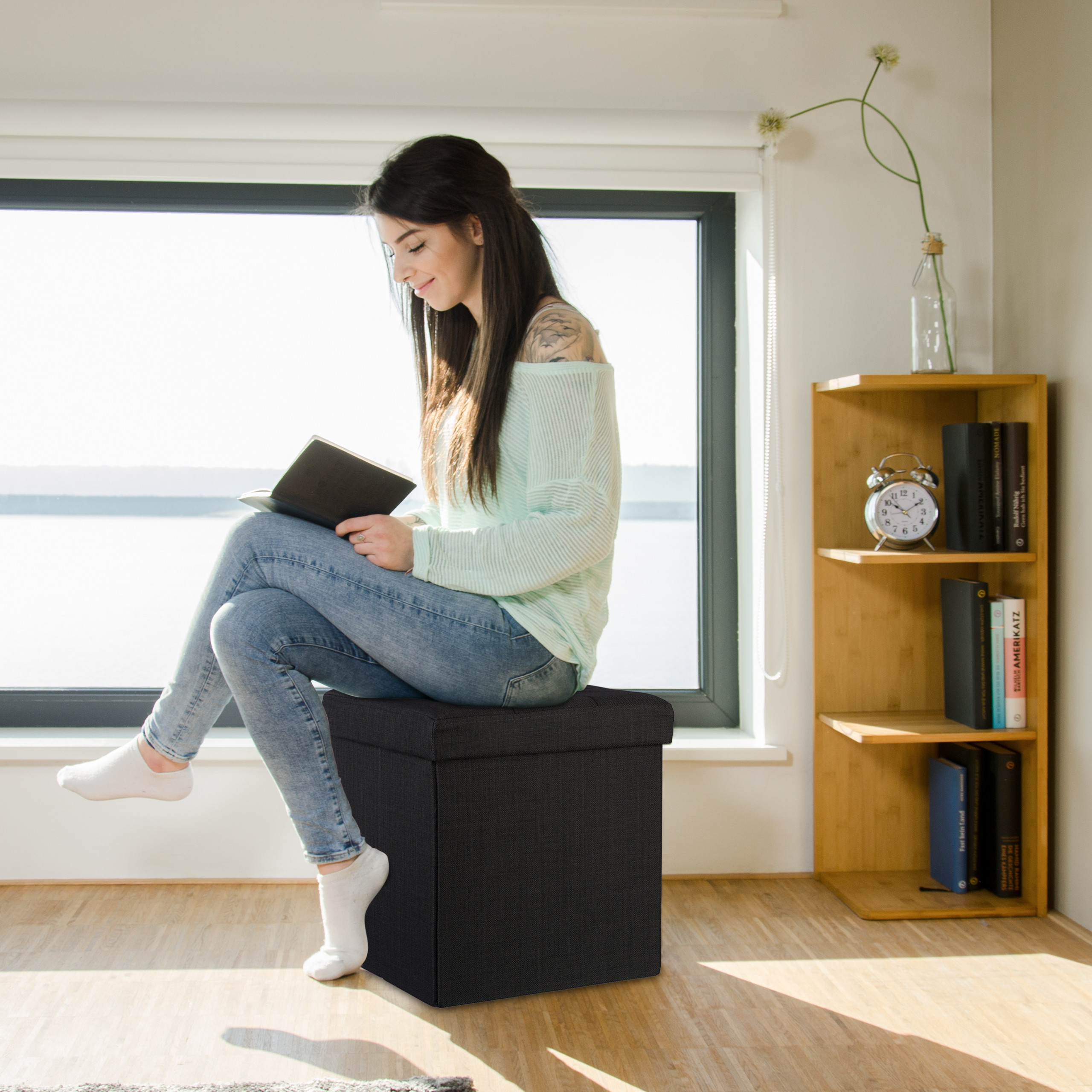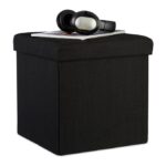 Sulankstoma sėdimoji vieta su atlenkiamu dangčiu 38x38x38cm, juodos spalvos
