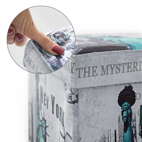Pristatome jums elegantišką ir funkcionalią sulankstomą sėdimąją vietą, kuri ne tik papuoš jūsų interjerą, bet ir suteiks praktišką daiktų saugojimo sprendimą. Ši kubo formos taburetė yra tikras daiktų saugojimo erdvės stebuklas, pasižymintis įvairiais motyvais ir spalvomis: pilka, mėlyna ir juoda.