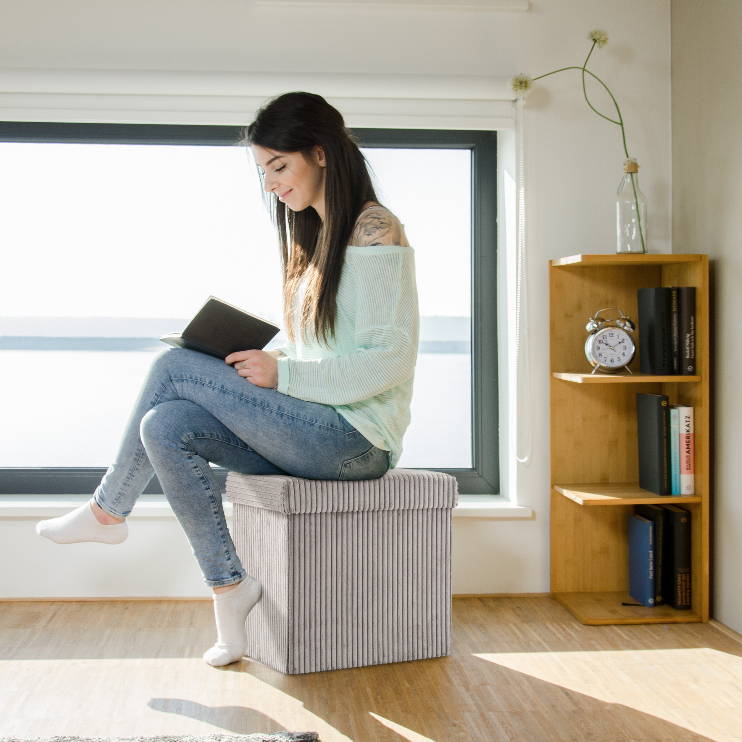 - Funkcionalumas: Šis minkštas kubas ne tik suteikia papildomą sėdimąją vietą, bet ir leidžia laikyti įvairius daiktus viduje, padedant palaikyti tvarką.