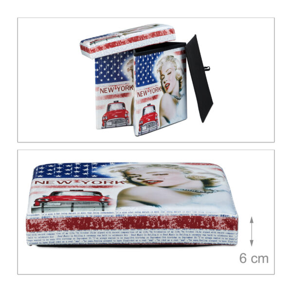 Įneškite stiliaus ir funkcionalumo į savo namus su šia elegantiška sulankstoma sėdimąja vieta. Šis kubo formos baldas ne tik suteikia patogią sėdėjimo vietą, bet ir tarnauja kaip praktiška daiktų saugojimo erdvė. Pasirinkite iš tamsiai mėlynos, raudonos arba baltos spalvos, kad priderintumėte prie savo interjero.