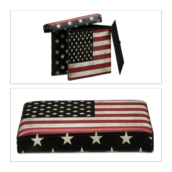 Sulankstoma sėdimoji vieta su atlenkiamu dangčiu 38x38x38cm., tamsiai mėlynos/raudonos/baltos spalvos