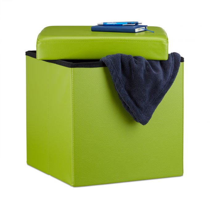 Sulankstoma sėdimoji vieta su atlenkiamu dangčiu 38x38x38cm, žalios spalvos