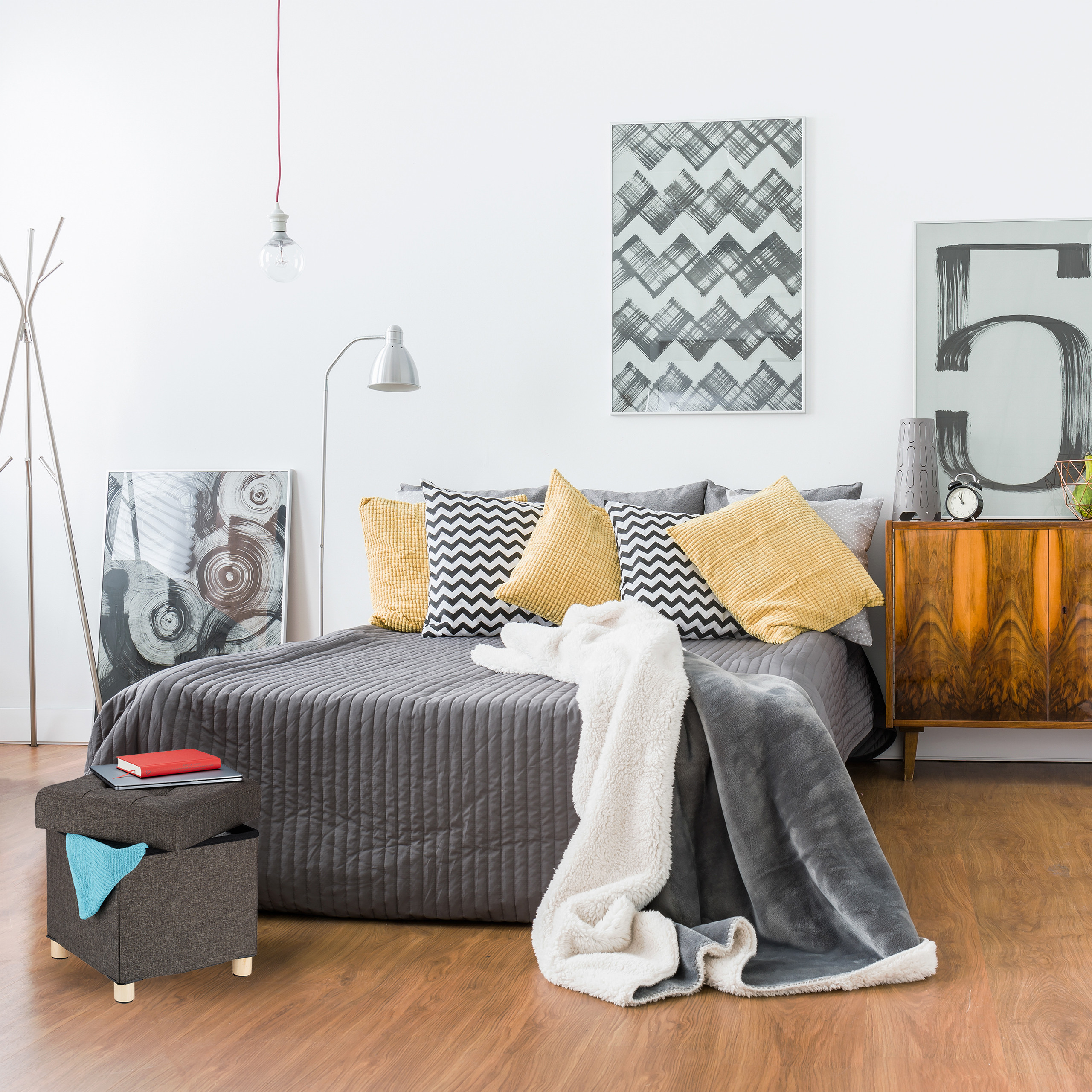 Ši taburetė ne tik suteikia papildomą sėdimąją vietą, bet ir yra ypač naudinga dėl didelės daiktadėžės, paslėptos pufo viduje. Čia galite laikyti antklodes, žurnalus, rankines ir įvairius kitus priedus, taip užtikrindami tvarką ir estetiką savo namuose.