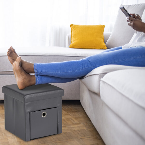 Ši moderni pilkos spalvos sulankstoma sėdimoji vieta yra puikus sprendimas tiems, kurie vertina funkcionalumą ir stilių. Dėl savo kompaktiško dydžio ir elegantiško dizaino, ši kubinė taburetė gali būti naudojama įvairiose namų erdvėse, suteikiant papildomą sėdimąją vietą ir patogų daiktų laikymo sprendimą.
