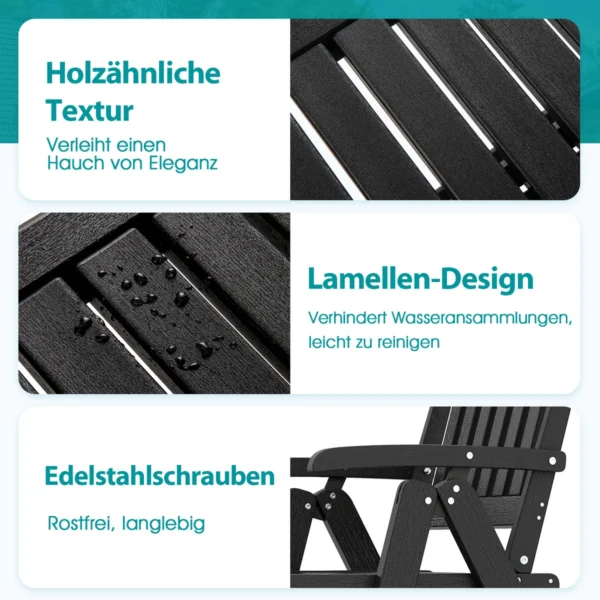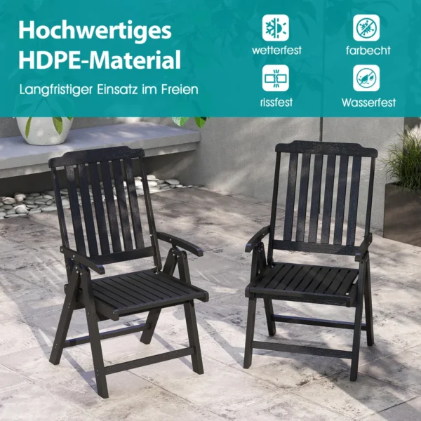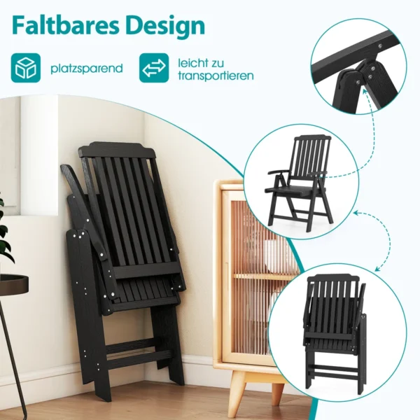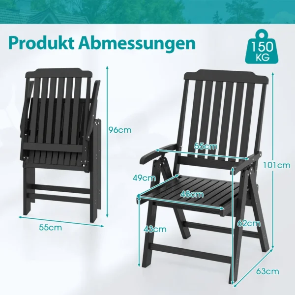Sulankstoma sodo kėdė 55x63x101cm, juodos spalvos – praktiškas ir patogus sprendimas įvairioms lauko erdvėms. Ši sulankstoma kėdė pasižymi patvarumu bei atsparumu oro sąlygoms, todėl tinka naudoti sode, balkone ar terasoje.