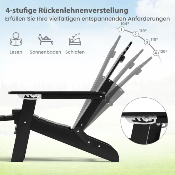 • Ergonomiška sulankstoma Adirondack kėdė su 4 padėčių atlošu.