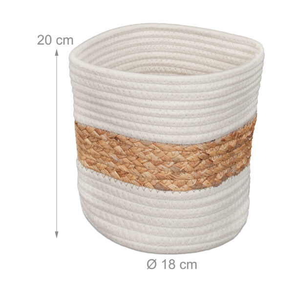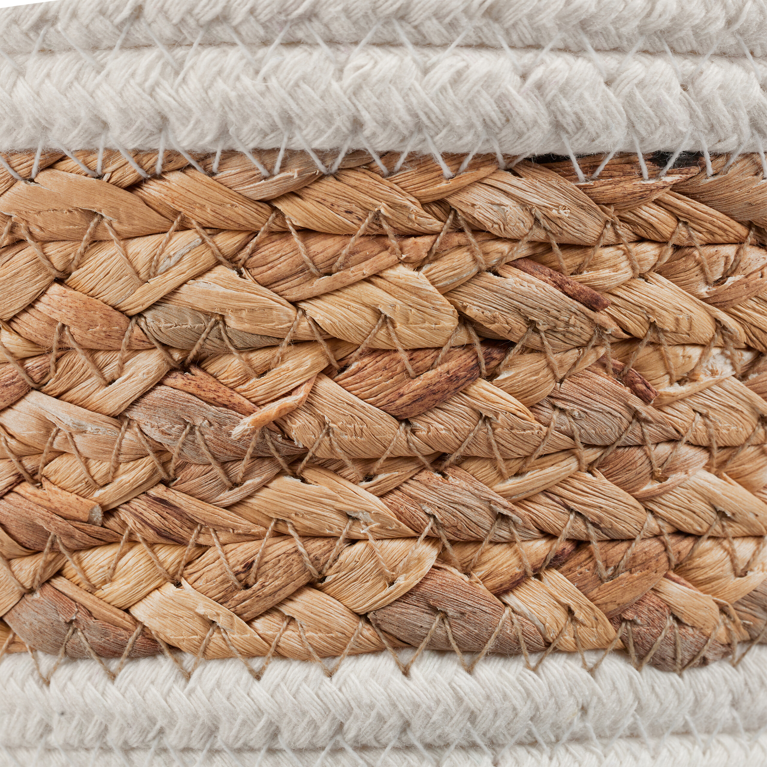Įneškite boho stiliaus žavesio į savo namus su šiuo mažuoju dekoratyviniu krepšeliu. Pagamintas iš aukštos kokybės medvilnės ir natūralaus vandens hiacinto, šis krepšys ne tik padės tvarkyti daiktus, bet ir taps stilingu interjero akcentu.