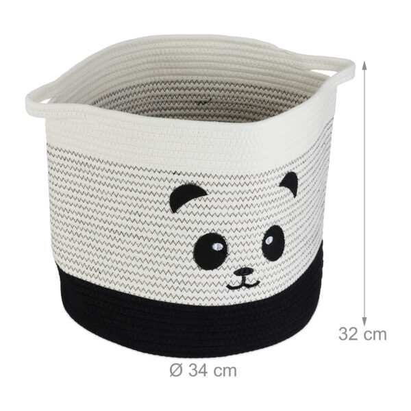 - Stilingas akcentas: Baltos ir juodos spalvos derinys suteikia modernų ir estetišką išvaizdą, todėl krepšys puikiai tinka ne tik vaikų kambariui, bet ir kaip laikymo sprendimas šalia persirengimo stalo ar bet kurioje kitoje namų vietoje.