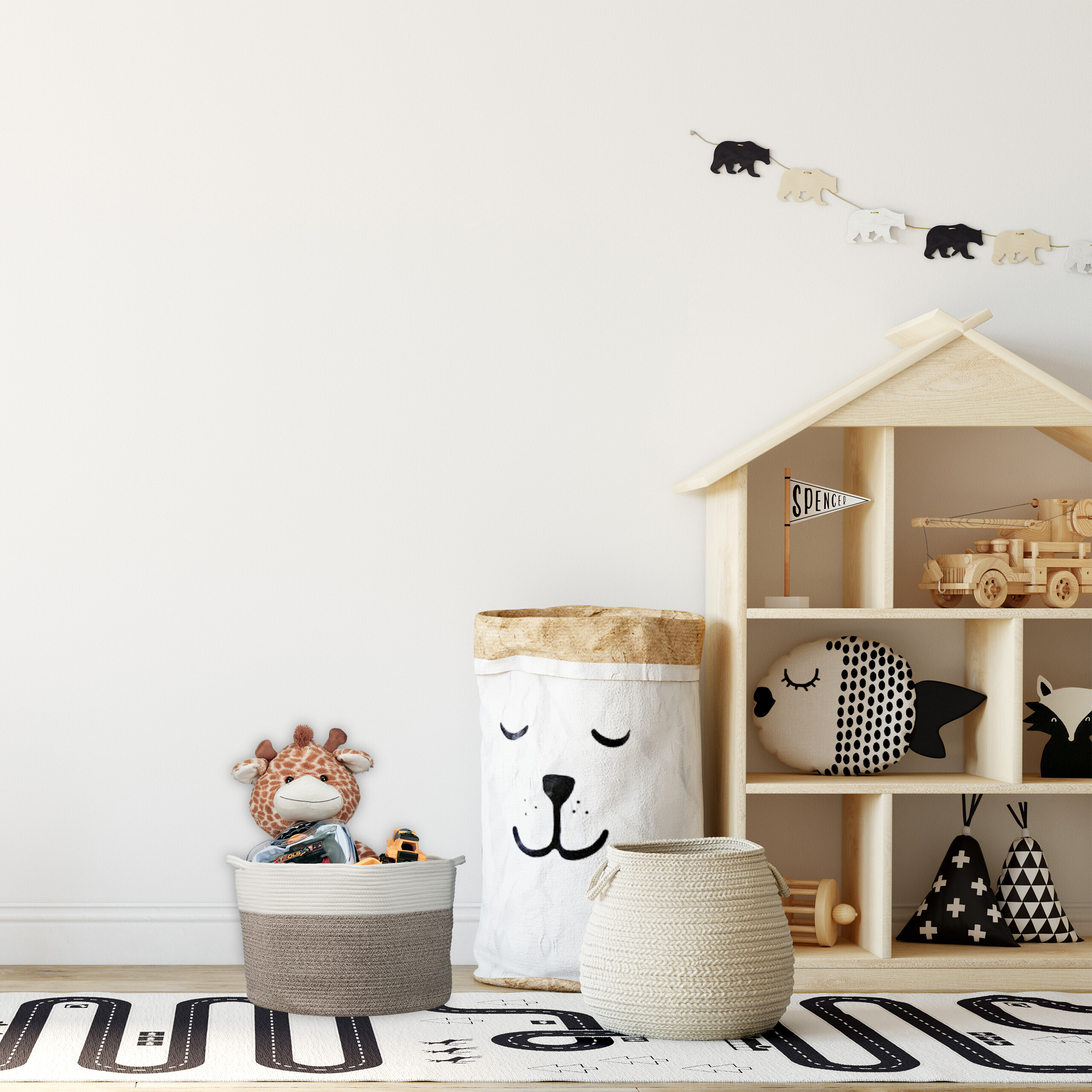 Sulankstomas krepšys 35x55cm – Šviesiai Rudos/Baltos Spalvos
