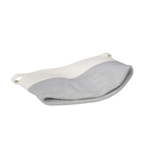 Įneškite boho stiliaus žavesio į savo namus su šiuo elegantišku medvilniniu krepšiu. Šis krepšys ne tik padės tvarkyti jūsų daiktus, bet ir taps stilingu interjero akcentu. Jo universalus dizainas puikiai tinka įvairioms erdvėms, o subtilios baltos ir pilkos spalvos suteikia šiuolaikiškumo.