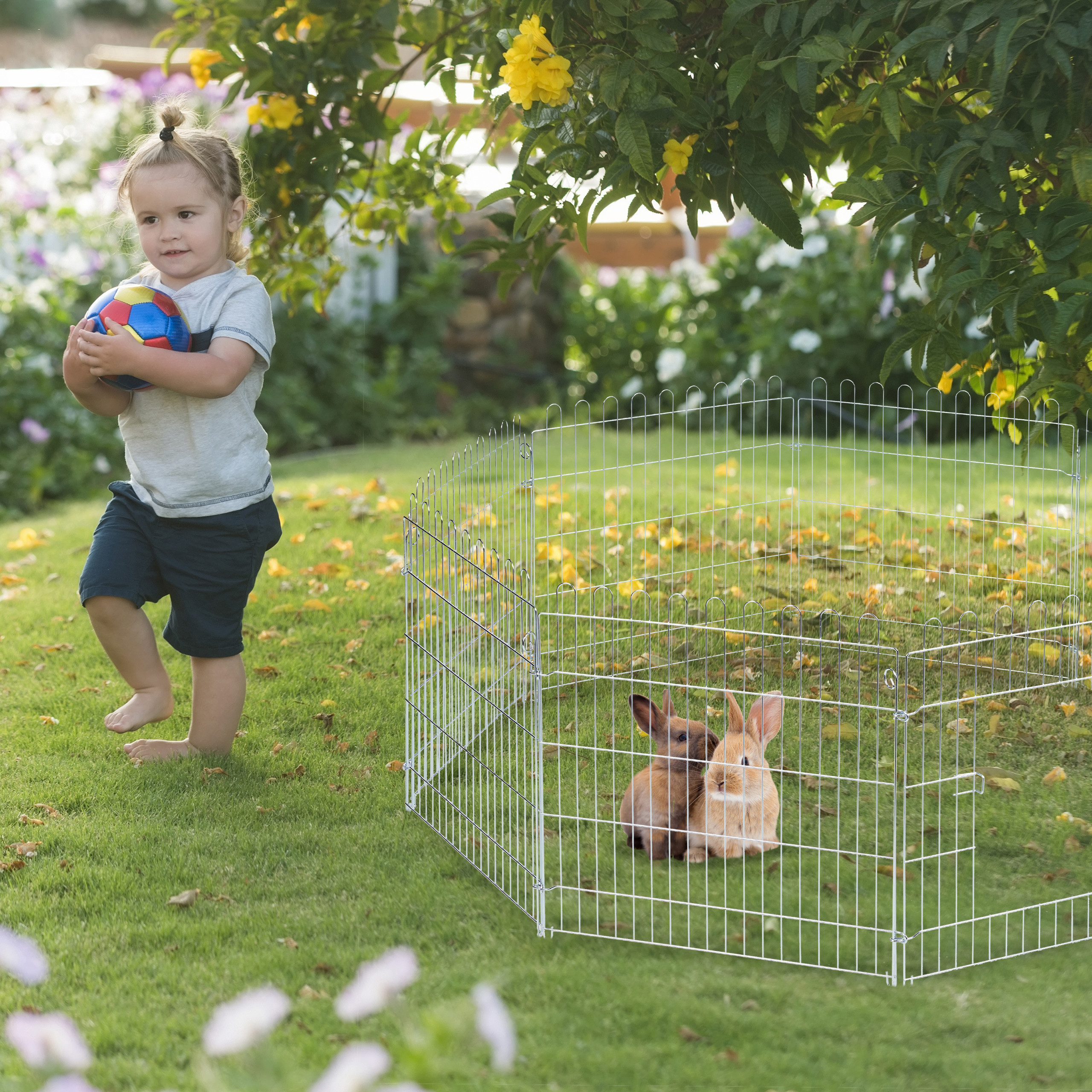 - Paprastas Montavimas: Sulankstomas dizainas leidžia lengvai ir greitai surinkti bei išardyti aptvarą.