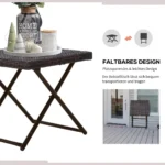 Praturinkite savo sodo ir terasos atmosferą šiuo moderniu sulankstomu aukštos kokybės rotango stalu ir visada laikykite mėgstamą knygą bei šildantį gėrimą po ranka, kai atsipalaiduojate lauke. Tvirtas plieninis rėmas ir polirotango stalviršis yra lengvai valomi, todėl šoninis staliukas taip pat gali tarnauti kaip dekoratyvinė pastogė jūsų gėlėms. Dėl sulankstomų kojų sodo stalą galima lengvai transportuoti ir laikyti, taupant vietą.