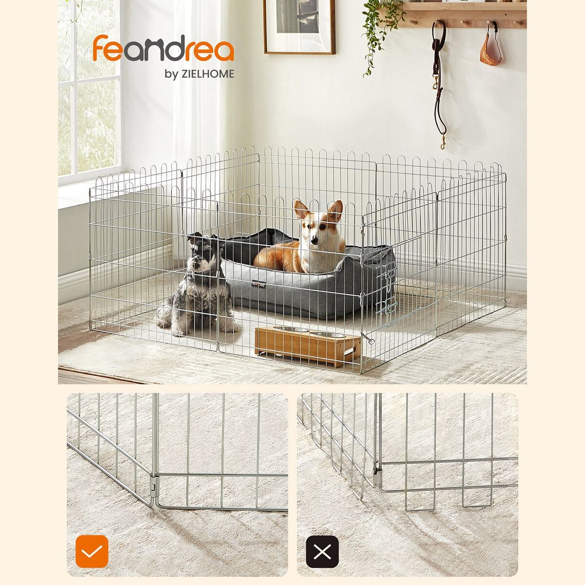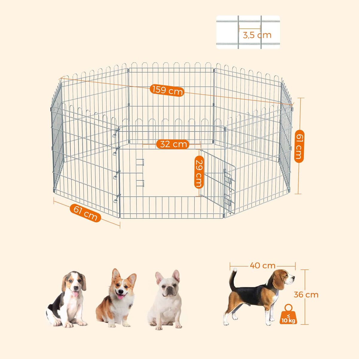 Sulankstomas metalinis gyvūno narvas PPK001W01 yra puikus pasirinkimas jūsų augintiniui. Šis narvas yra lengvai sulankstomas, todėl, kai nenaudojamas, užima labai mažai vietos. Jis yra saugus, nes 3,5 cm atstumas tarp laidų neleidžia gyvūnams pabėgti ar sugauti letenų. Narvas yra erdvus, su 8 tvoros plokštėmis, kurių kiekvienos dydis yra 61 x 61 cm, suteikiant pakankamai vietos jūsų augintiniui žaisti ir judėti.