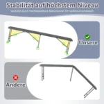 - Tvirtos metalinės kojos ir saugus fiksavimo mechanizmas garantuoja stabilumą ir atramą iki 600 kg.