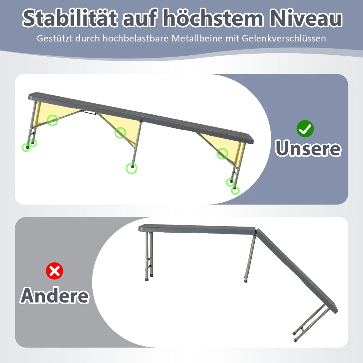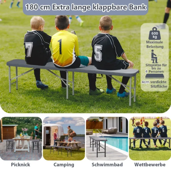 - Sulankstomas suolas skirtas naudoti lauke įvairiose situacijose, tokiose kaip iškylos, stovyklavimas ar sporto renginiai.